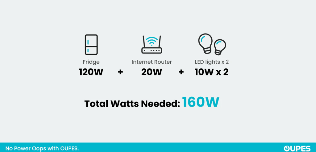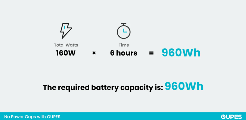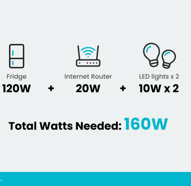 Suponiendo que la mayoría de los cortes de energía duran entre 6 y 8 horas en su área, todo lo que tiene que hacer es multiplicar los vatios de cada dispositivo por horas de uso.