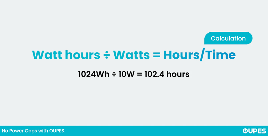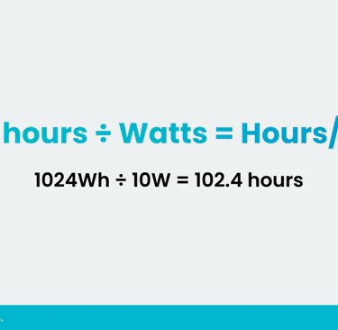 Tomemos como ejemplo el Mega 1. El Mega 1 tiene una capacidad de 1024Wh. Si desea alimentar una bombilla que utiliza 10 vatios, deberá dividir la capacidad (1024 Wh) por el consumo de energía de la bombilla (10 vatios). Este cálculo muestra que la bombilla funcionaría durante 102,4 horas cuando estuviera enchufada al Mega 1.