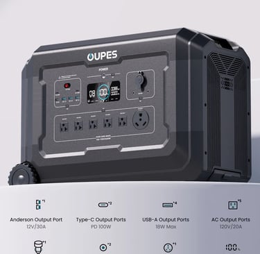 Todos los productos OUPES están equipados con celdas de batería LFP, que pueden durar más de 10 años y soportar hasta 3500 ciclos de carga manteniendo el 80% de su capacidad.